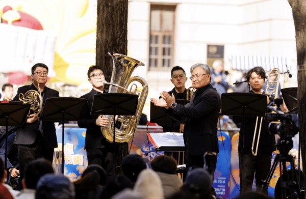 东方网记者熊芳雨12月6日报道:12月的申城,上海音乐厅南广场早已被金黄的银杏叶层层铺满。今天上午,音乐厅品牌项目“银杏音乐会”如期而至。恰逢上海音乐厅建成95周年,这场陪伴沪上市民走过十二年的“季节限定”公益音乐会,今年以“杏会金响”为主题,集结十一支铜管和打击乐,用磅礴声浪重塑城市户外音乐新体验。