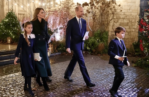 据每日邮报证实,她与丈夫威廉王子及三个孩子(12岁的乔治王子、10岁的夏洛特公主和7岁的路易王子)共同出席活动,一家五口身着协调的深蓝与墨绿色系礼服温馨亮相。