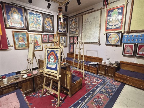 如今,林吉央生已过而立之年,二十余年的绘画生涯让他视力严重损耗,指尖因常年研磨矿石与握笔而布满老茧,但他的眼神依旧清澈明亮。他依然坚持每年前往无人区探望师父,将结缘所得的善款足额交付,看着师父日渐苍老的容颜,他更坚定了 “在有限生命里多传佛法” 的信念。他还牵头成立了小型的唐卡画师互助小组,将自己的技艺传授给年轻僧人,同时普及健康防护知识,改善画师们因接触矿物颜料而导致的健康问题。“老画师们大多病痛缠身,寿命不长,我想让这份技艺传承下去,也想让传承者能健康地创作。”