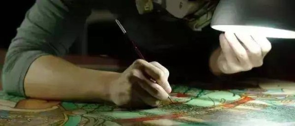 十岁那年,林吉央生开始接触矿物颜料的调制与使用。师父带着他深入无人区的山谷,采集孔雀石、朱砂、雌黄等天然矿石,亲自研磨成粉,再以牛胶、胆汁调和。“纯天然的颜料是对神明的敬畏,哪怕工序繁琐,哪怕矿石带有微毒,也不能有丝毫懈怠。” 师父的教诲深深烙印在他心中。为了精准把控颜料的湿润度与颜色深浅,他学着师父的样子,用舌尖轻润笔尖,感受颜料在宣纸上的晕染效果。这种特殊的技法,让他的笔触更具灵性,却也让矿物中的微量重金属悄悄侵蚀着他的身体,多年后眼底的黄斑与指尖的薄茧,都是这段岁月留下的印记。