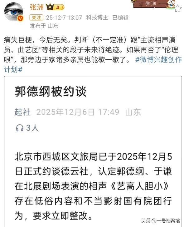 主流相声院团艺人回应郭德纲被约谈:如果违法,国家会管