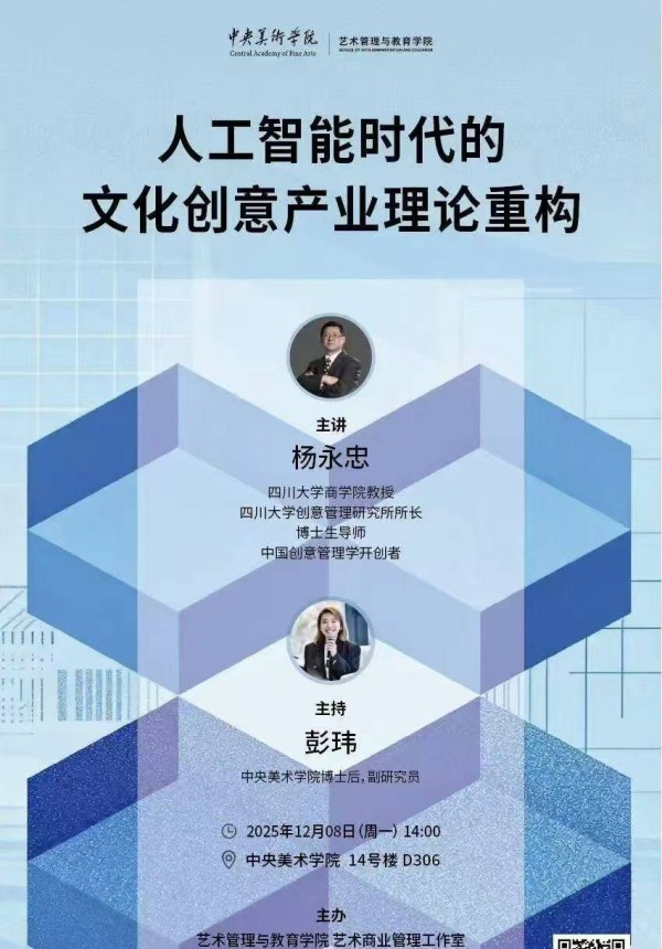 2025年12月8日,杨永忠教授赴中央美术学院艺术管理与教育学院展开讲座。