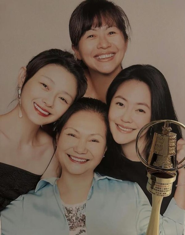 S把奖杯与她们母女四人的全家福合影留念,S妈被三个女儿围在中间,她笑得格外灿烂,眼神中满是幸福。