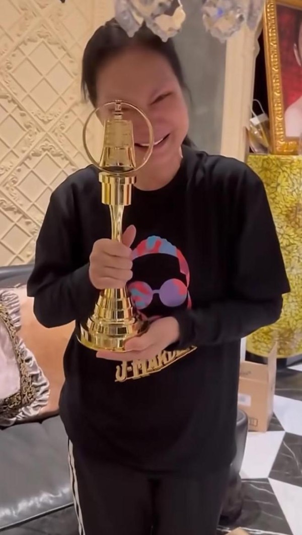 小S把金钟奖奖杯送给S妈,S妈拿到奖杯时双眼含泪,她为拥有一位这么优秀的女儿无比骄傲。