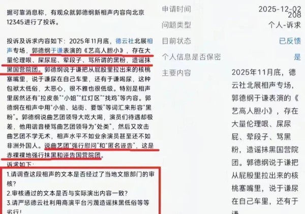 12月5日,西城文旅约谈郭德纲的回执截图冲上了热搜