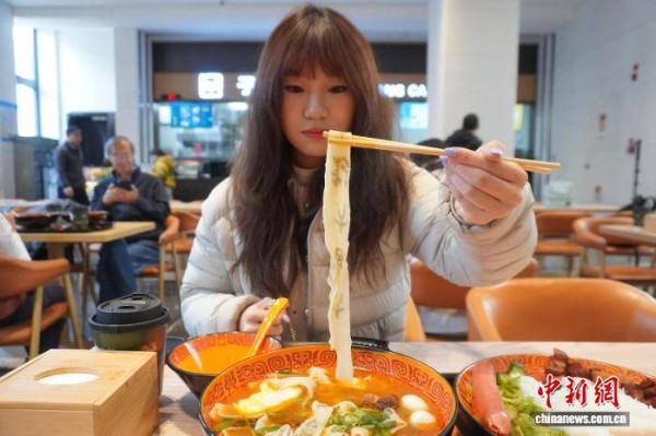 中新社河南安阳12月11日电 题:“甲骨文面条”走红 游客吃面“沾福气”