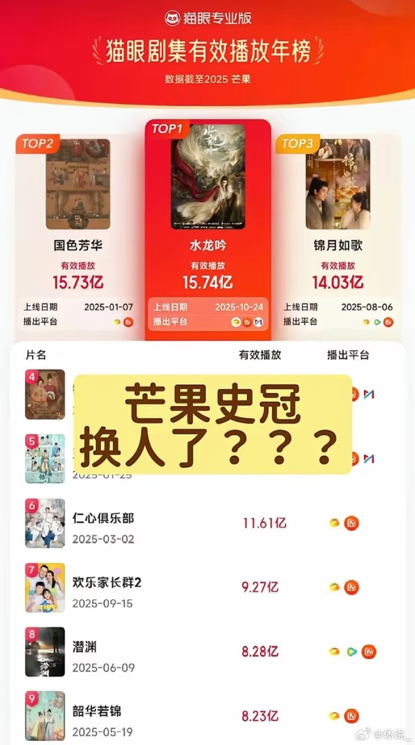 #芒果史冠#罗云熙的《水龙吟》超了杨紫的《国色芳华》?如今这些剧的这个冠、那个冠,真是看不懂不过从播出效应来看这几年在芒果TV独播的剧,路人讨论度大,感觉比较火其实是这几部:杨洋的《人间烟火》闫妮的《小巷人家》杨紫的《国色芳华》这几个剧,哪怕没看也能说出几个名场面而《水龙吟》给我感觉是一个非常粉丝向的剧,你要问路人剧情,大部分人是说不出来的。所以说,为啥这剧播放量能超《国色芳华》,真是看不懂啊……#国色芳华#