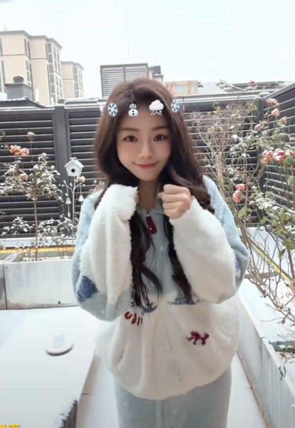 演员邓家佳在个人社交平台分享出北京初雪后别墅院子里的雪景,视频中,邓家佳一身毛绒睡衣出镜,站在雪地里的她开心跳舞。