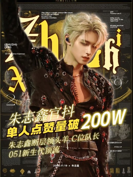 朱志鑫手势舞视频点赞破200万,创少年官抖纪录
