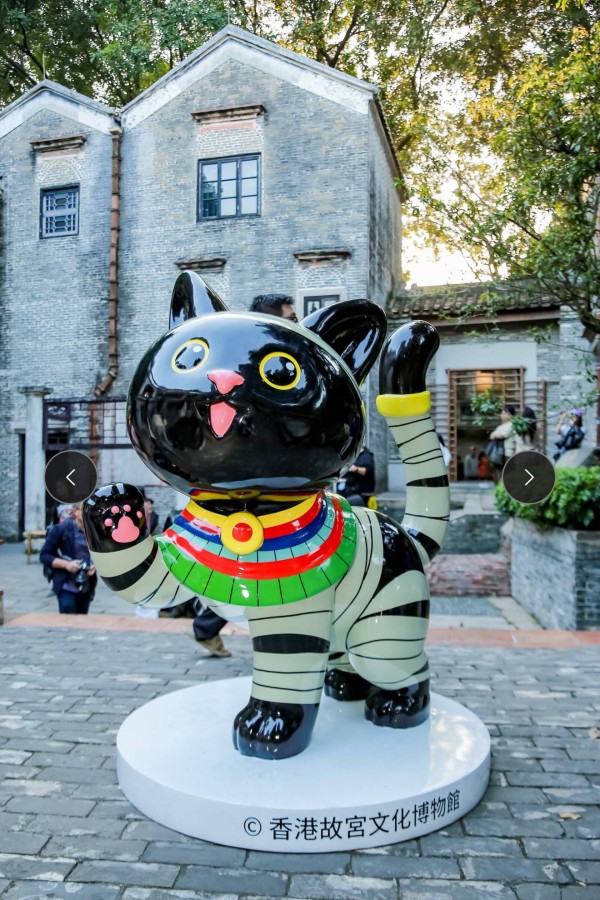 吴志华表示,“古埃及文明大展——埃及博物馆珍藏”于2025年11月20日至2026年8月31日在香港故宫展出,汇聚250件来自埃及七间重要博物馆及新近考古发现的珍贵文物,其中不乏首次在埃及境外巡展的萨卡拉遗址猫木乃伊等文物,极具历史与学术价值。本次路演活动旨在让更多大湾区市民感受古埃及文明的独特魅力,促进文化交流。作为此次活动的落地方,瑞安新天地文化艺术生态负责人魏天天介绍道,这场文化联动活动是岭南新天地升级为“大湾区文化枢纽”后的又一次创新尝试,团队特意放弃了刻板的法老形象,选择以猫作为文化符号,“这些融合埃及文化元素的七只猫主题装置分布在龙塘诗社、喷泉旁等公共空间,并融入了法老纹样、蓝色河马象元素。”她表示,岭南天地希望通过这些创新尝试,让不同年龄、不同职业的市民游客能感受到文化艺术的魅力。