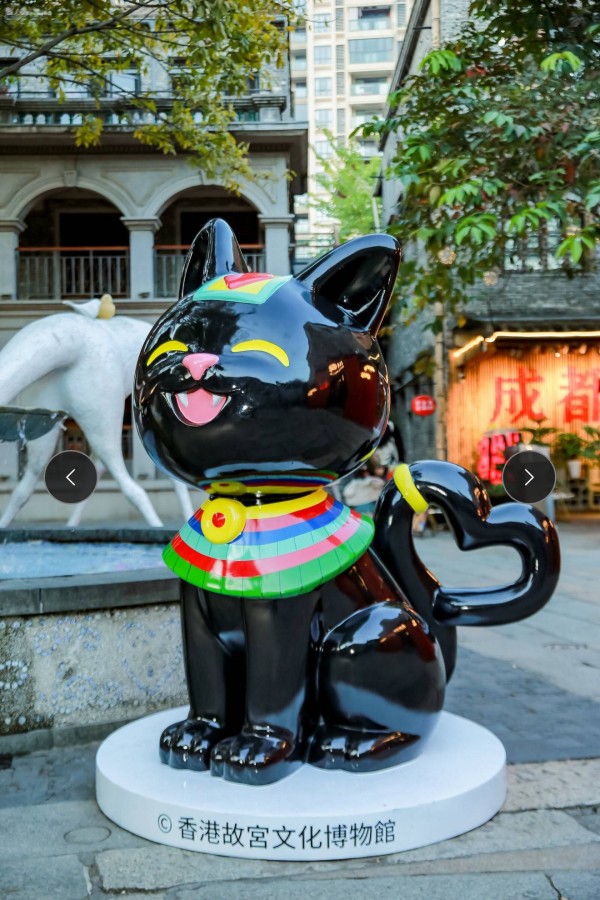 灵感源自展览亮点文物的“埃及猫”艺术装置散落在岭南天地的公共空间。 受访者 供图