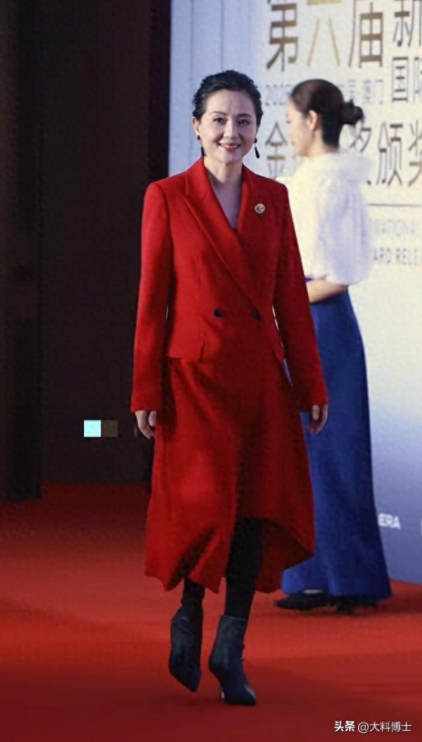 陶慧敏的亮相堪称教科书级的中老年穿搭范本。红色西装套装剪裁利落,搭配同色半裙,既保留了端庄大气,又透着一股不服老的劲头。60岁的她,皮肤紧致、眼神清亮,盘发造型更显肩颈线条优雅。网友惊呼:“这状态哪里像60岁?简直是冻龄女神!”红色在中国文化中象征喜庆与活力,陶慧敏用这一身告诉世界:年龄不过是数字,真正的美是沉淀后的自信与从容。