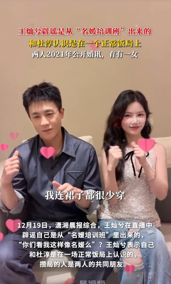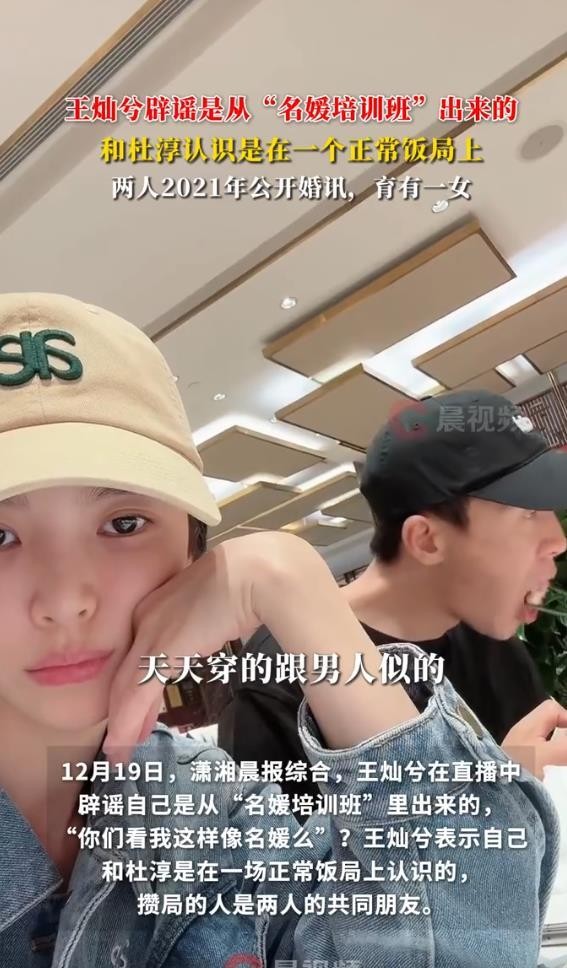 “你们看我这样像名媛么?我连裙子都很少穿,天天穿得跟男人似的。”12月19日,杜淳妻子王灿在直播中的这番反问,将她再次推至一场旷日持久的网络传闻中心。面对缠绕自己数月的“名媛培训班”出身猜测,她选择以最直白的方式正面回击。