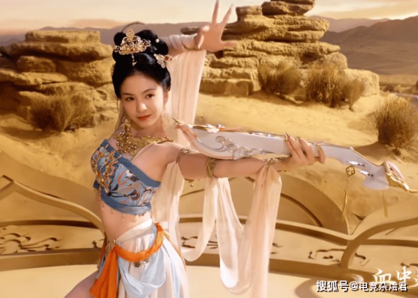 2021年,《逆水寒》推出新流派鸿音,唐诗逸和萨顶顶合作,在黄沙漫天的西域场景中演绎同名舞蹈《鸿音》。视频里,她脚踏黄沙翩然起舞,举手投足间佛韵流转,搭配萨顶顶直冲天灵盖的歌声,整个画面美得让人窒息,B站播放量直接突破1200万。