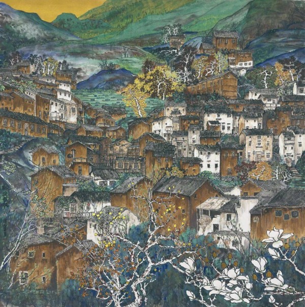 最后,谭作春的岩彩画画功精致、老到。观谭作春的《绿水青山就是金山银山》等岩彩画作品,布局精致巧妙,章法浑然有度,山野景色、古村山寨看似布局随意、随性、随心,却可谓是笔到、神到、意到,体现出一种独到的审美和境界。这既是一种艺术展示,也是高度自我的一种艺术情怀!他就是要以这种最纯粹的绘画手法,来表现自己内心的人文精神和审美风尚!无疑,他在岩彩画方面确确实实进行了可贵的研修并取得成果!