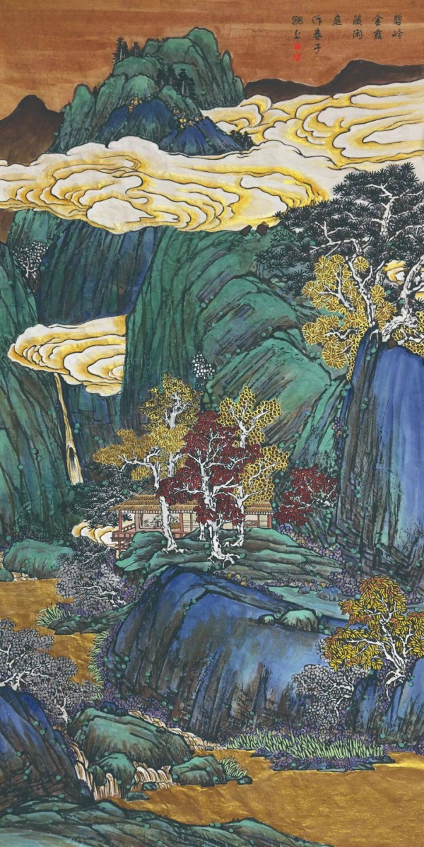 首先,谭作春赋予了中国传统写意画新的意象和底蕴。观谭作春的《绿水青山有人家》等岩彩画作品,他一改传统写意画空灵飘逸、以简驭繁的山水风貌——山还是那座山,却浑厚饱满、典雅明丽;水还是那片水,却波光粼粼、涟漪层层。这些景象与蓝天白云相映成趣,凸显一种清新灿烂的勃勃生机,引人入胜。