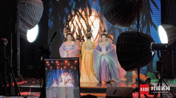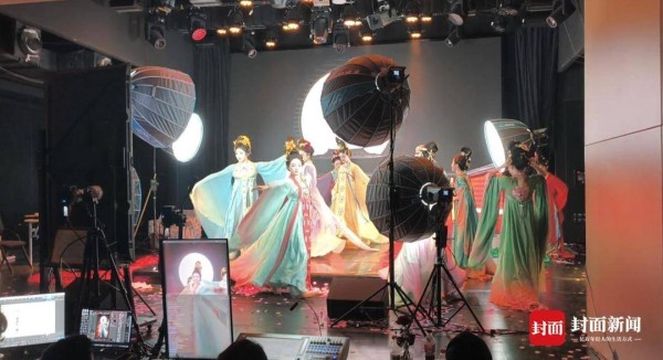 9名舞蹈演员,在团播间舞台上表演和候场。(拍摄:封面新闻记者 谢杰)