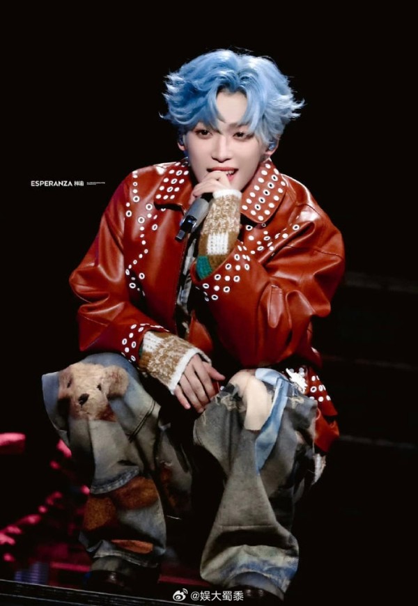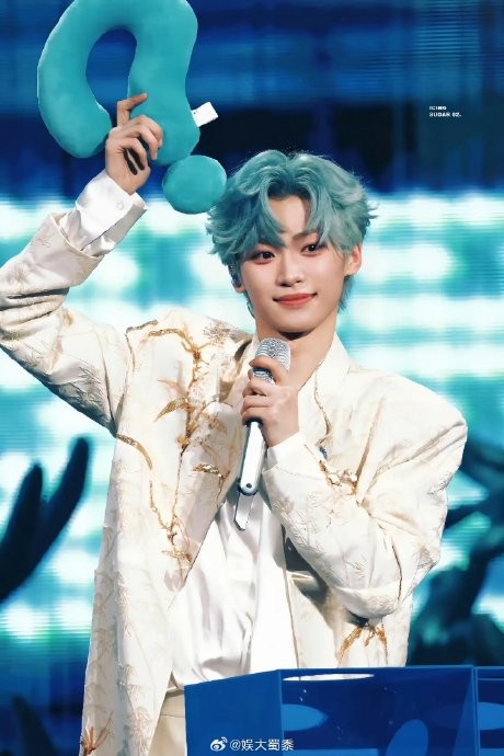 梓渝音乐节蓝发贴钻眼妆造型亮相