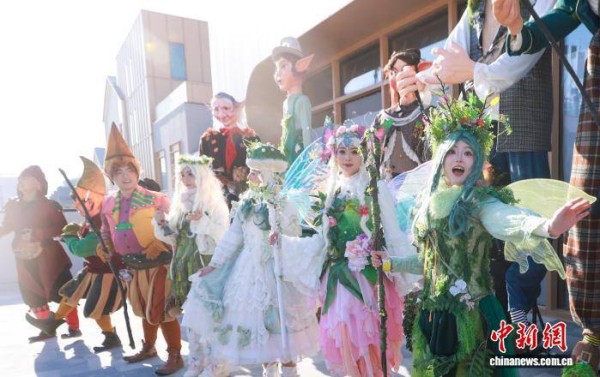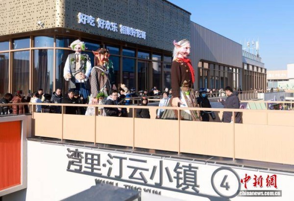 1月2日,元旦假期,乌镇戏剧节开年大巡游——《艾尔夫奇境之旅》在北京城市副中心商业地标——“湾里”上演。中新社记者 贾天勇 摄