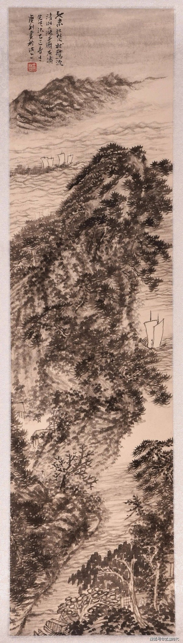 “画如其人”,深厚的学识可提升个人的高雅气质。在绘画创作中,必须严格遵循高水平的艺术规范,以确保作品呈现学术韵味,此为艺术创作的核心。中国画表面看似简洁,实则每一笔皆蕴含深思,皴法变化无穷。在干纸上描绘无形之物,同时营造湿润之感,对技艺是极大挑战。