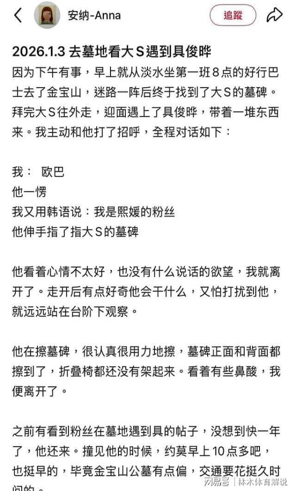 具俊晔天天到墓园看大S?网友多次巧遇曝真相