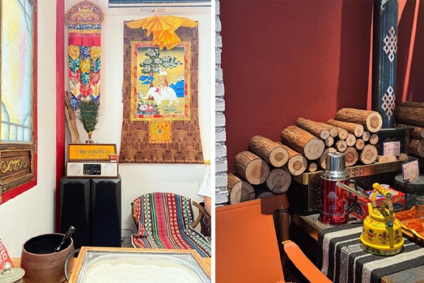 再说门店装修,必备经幡、唐卡、壁画等藏式元素,点题打造氛围感。