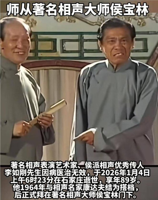 89岁相声名家李如刚去世!师承侯宝林,晚年遭侯耀华“裹挟”拜师