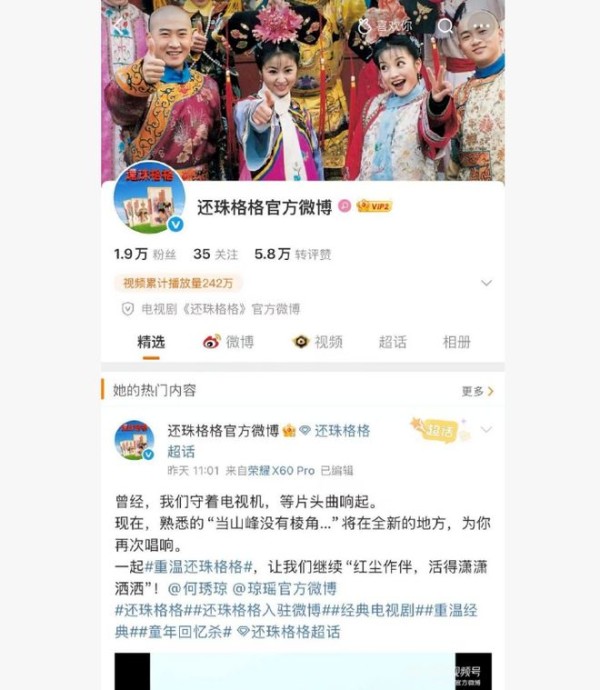 最近《还珠格格》悄悄注册了微博和抖音,或许官方想象的是热火朝天的爷青回,结果方向终究是走反了……没有走进热闹的皇宫,而是走进了皇帝亲封的冷宫。两个平台粉丝凑一起才4万多,评论区连个像样的回忆杀都没刷起来,冷清得跟紫薇她妈当年住的破院子似的。