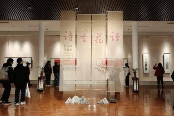 蜡梅盛开之际,“诗言花语——刘云泉写梅展”正在草堂举行。展览中的一幅幅梅花,或疏影横斜,或繁花似雪,与配合画作展出的书法斗方和盆景一起,为展览现场带来了一缕缕视觉层面的“暗香浮动”。