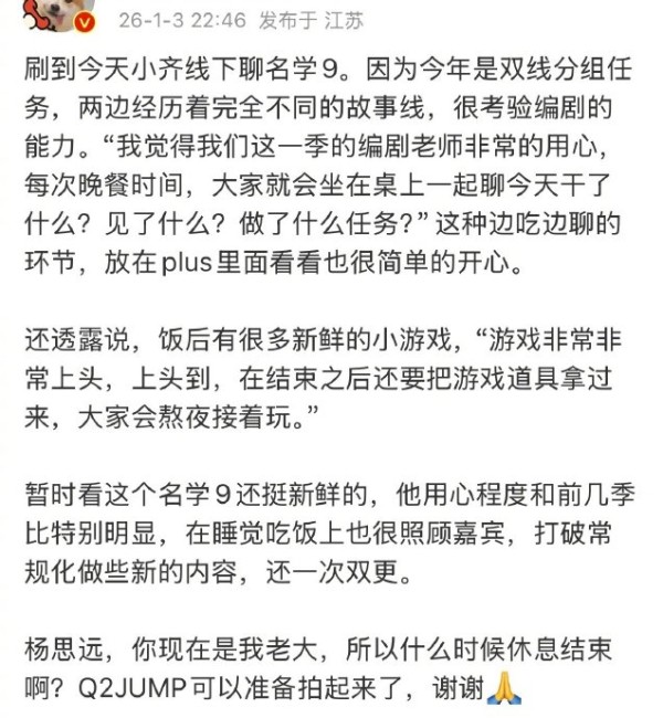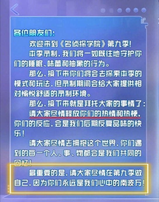 #院人见缝插针式宣传名学# 论宣传《名学9》还是得看院人!从@齐思钧 剧透双线模式的超强看点,@李晋晔猫子 说录得很开心,到@唐九洲 在线求满分好评!院人走到哪夸到哪,全是亲身感受的真情流露啊~节目组的用心和学长们的沉浸参与双向奔赴,才让这份真诚穿过屏幕,被每一位观众稳稳接住。期待往后的节目内容啦!#名侦探学院#