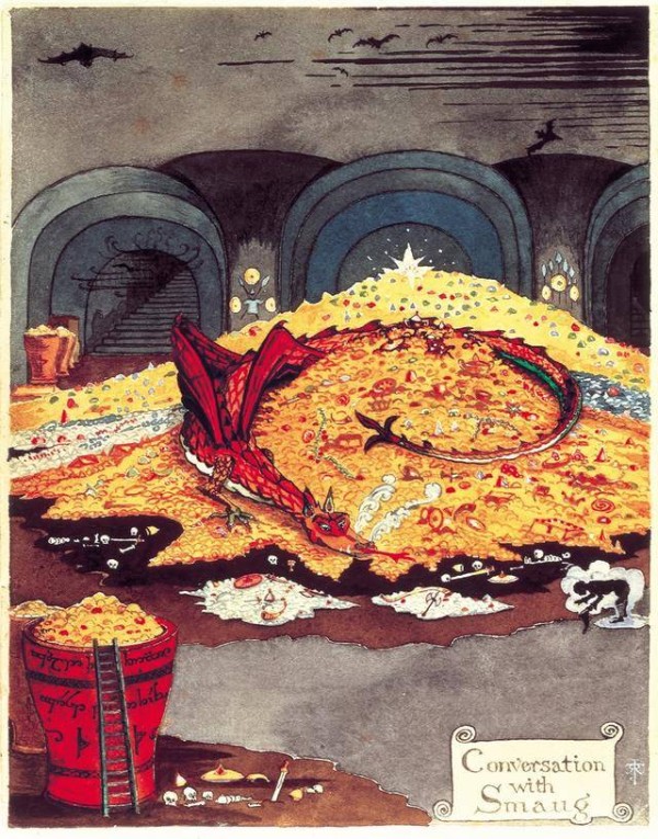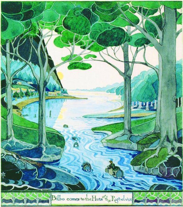 《霍比特人》插图:比尔博来到木筏精灵的小屋
