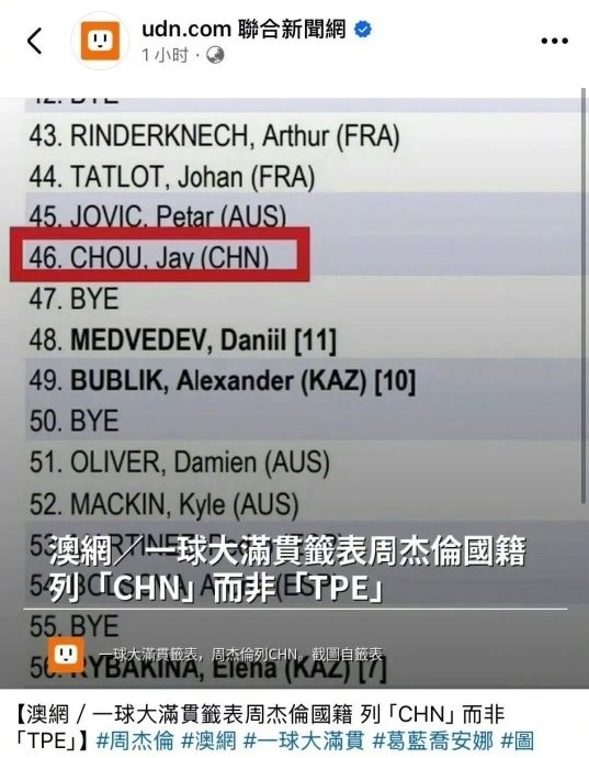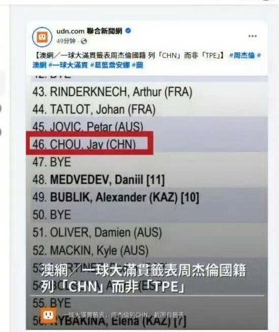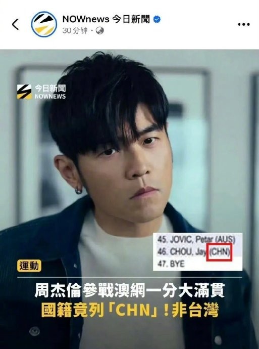 周杰伦澳网报名表国籍填“CHN中国”,用实际行动彰显立场,这波操作太刚了!