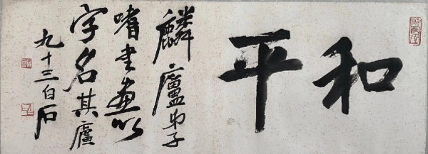 1953年,许麟庐在北京创办和平画店,从此正式涉足书画收藏领域。画店由徐悲鸿选址,内外三块店牌匾额分别出自齐白石、徐悲鸿和陈半丁之手。齐白石题写的匾额悬挂在画店的正门口,上面还有白石老人手绘的一只和平鸽,及题识的“和平”二字。经齐白石授权,画店门口还竖起了“齐白石书画专售店”的招牌,店内则展示白石老人的书画作品。为人瞩目的是,齐白石时常会到画店坐一坐,有时还在现场授徒、作画,吸引书画爱好者纷至沓来。