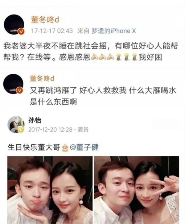 董子健半夜发我老婆不睡觉在跳社会摇,求助网友,看似求助这狗粮撒的一把又一把。