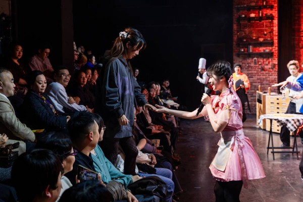 灯光亮起,节奏燃动。厨师化身“人声音响”,以口技与无伴奏合唱模拟锅碗瓢盆的灵动韵律,从意大利披萨到上海咸肉菜饭,多种美食意象贯穿全场——韩国现象级音乐剧《厨神秀》中文版,正在上海新世界城12楼带来充满本土特色的高互动表演。近日,全国首座“音乐剧探知乐园”——十二楼音乐剧之城正式启幕,《厨神秀》作为其中一台已经开演的驻演剧目,首批观众获邀上台,在热烈互动中率先体验了“看剧+生活”的多元文化新场景。