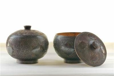 海南椰雕名家吴名驹制作的结婚喜盒。王益友供图