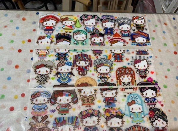 吴女士正在拼五十六个民族拼豆。图/受访者提供