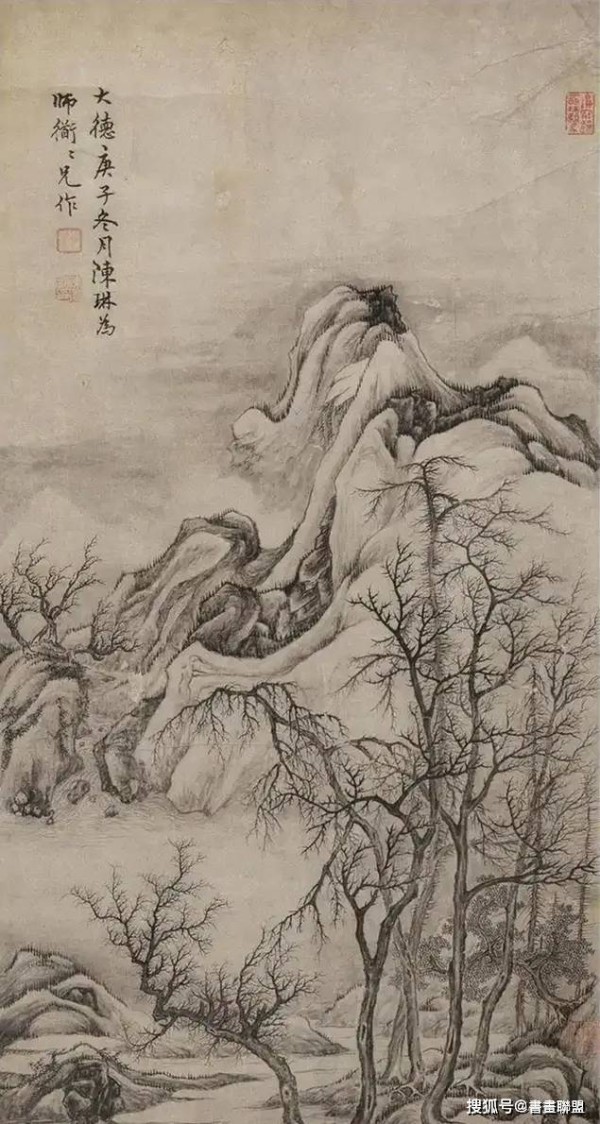 除花鸟题材外,陈琳在山水画领域亦有建树。传世之作如《秋山行旅图》《苍崖古树图》等,均以水墨写意为主,笔法苍劲简淡,意境幽远,进一步展现了其在多种画科中的卓越才华与全面修养。