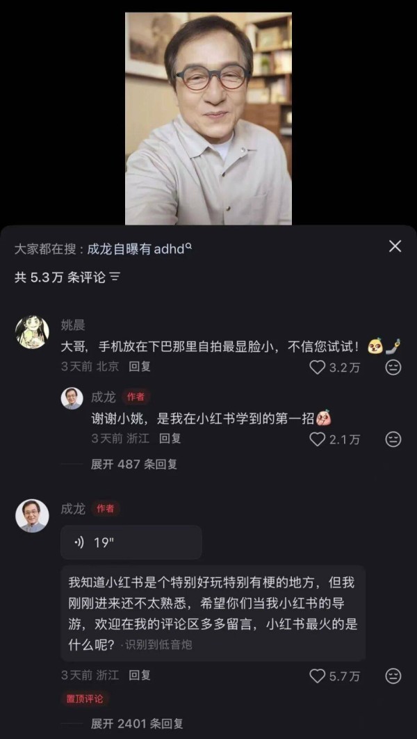 从这个意义上看,成龙入驻小红书是否“成立”,并不取决于涨粉速度或商业转化效率,而取决于这种跨代际明星与内容社区的连接,是否为行业打开了一条不同于以往的可能路径。