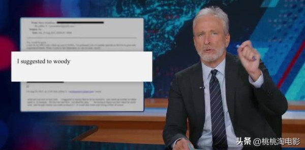 乔恩·斯图尔特在节目中展示了相关邮件的截图。这封邮件发送于 2015 年 8 月 29 日午夜,当时爱泼斯坦正绞尽脑汁为一位名叫“伍迪”的人策划职业生涯的下一步。