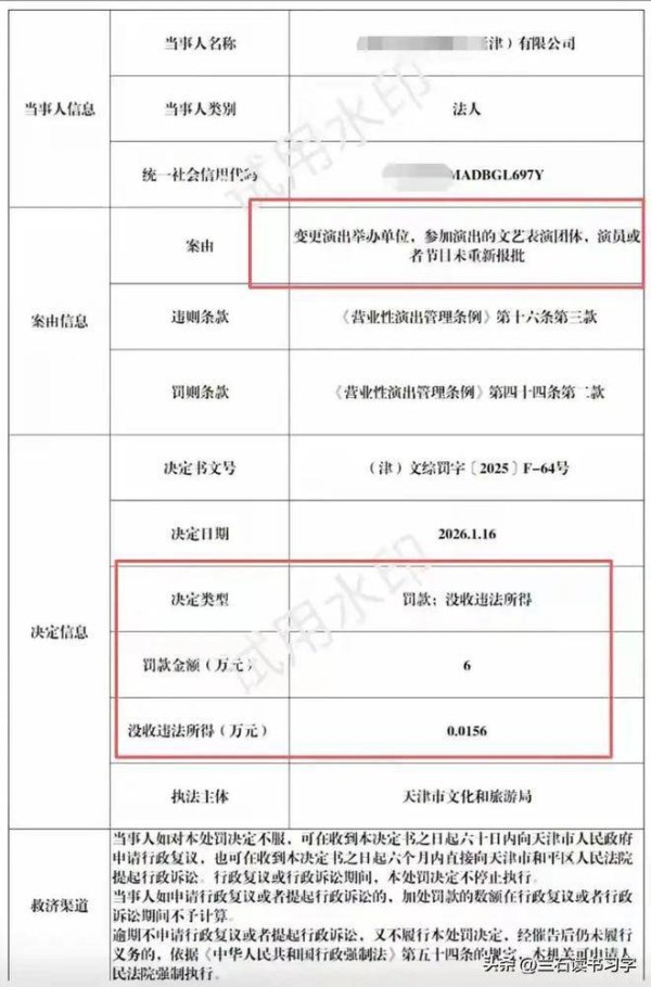 然而,正当钱城的事业看似步步高升之际,麻烦却接踵而至,让他根本无法喘息。首先就是那件令他颇为头痛的事情——遭遇了6万元的罚款。这一切的起因追溯到去年9月,钱城的极品相声帮在一场演出中,因临时更换演员而被举报到天津文旅部门。原本,这场演出的票房收入仅有156元,仅卖出了两张票,可是,天津文旅却对其开出了高达8.5万元的罚款。幸好考虑到对小微企业的支持,最终罚款被减至6万元,并且没收了那156元的非法所得。对于钱城来说,这无疑是一次沉重的打击。1月16日,他收到了正式的行政处罚决定书,虽然金额有所减少,但这仍然让他感到极度的疲惫和压力。