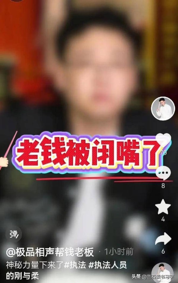 然而,抖音的工作人员告诉他,要等两天才能回复。钱城显然没有耐心等待,语气愈发强硬,要求马上解决问题,但最终抖音并没有给出明确的答复。1月27日,钱城在抖音发布了一段视频,带着幽默却透着无奈地说道:神秘力量下来了,老钱被闭嘴了。几天过去,钱城的抖音账号依旧是那个永远无法恢复的状态。