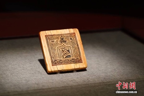 2月9日,由故宫博物院联合西藏自治区文物局等多家文博单位共同举办的“万法归一:萨迦寺历史文化与艺术”展在北京故宫博物院开幕。展览精选200余件珍贵文物,以“萨迦寺的历史”“九州一统”“萨迦时代的文化与艺术”“萨迦派的珍藏”四个单元,展现萨迦寺近千年的历史积淀、艺术特色,及其在中华民族多元一体进程中的重要作用。图为“萨”字印。中新社记者 韩海丹 摄