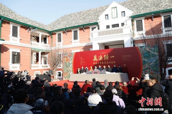 2月9日,由故宫博物院联合西藏自治区文物局等多家文博单位共同举办的“万法归一:萨迦寺历史文化与艺术”展在北京故宫博物院开幕。展览精选200余件珍贵文物,以“萨迦寺的历史”“九州一统”“萨迦时代的文化与艺术”“萨迦派的珍藏”四个单元,展现萨迦寺近千年的历史积淀、艺术特色,及其在中华民族多元一体进程中的重要作用。图为展览开幕式。中新社记者 韩海丹 摄
