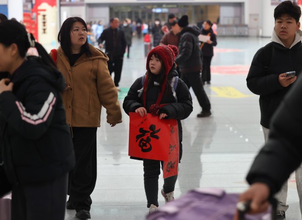 旅客拿着福字和春联踏上回家旅程。新京报记者 王贵彬 摄