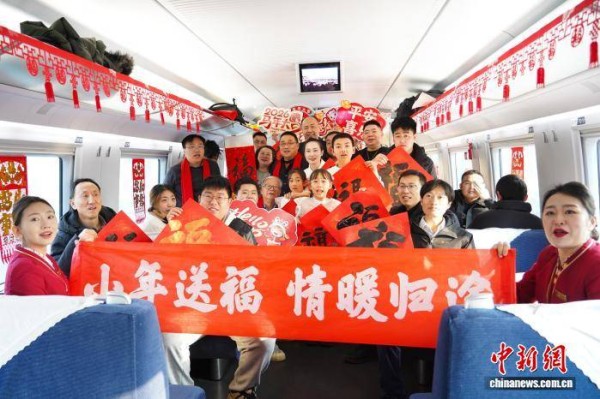 G1299次列车内开展“小年送福 情暖归途”主题活动。天津客运段 供图