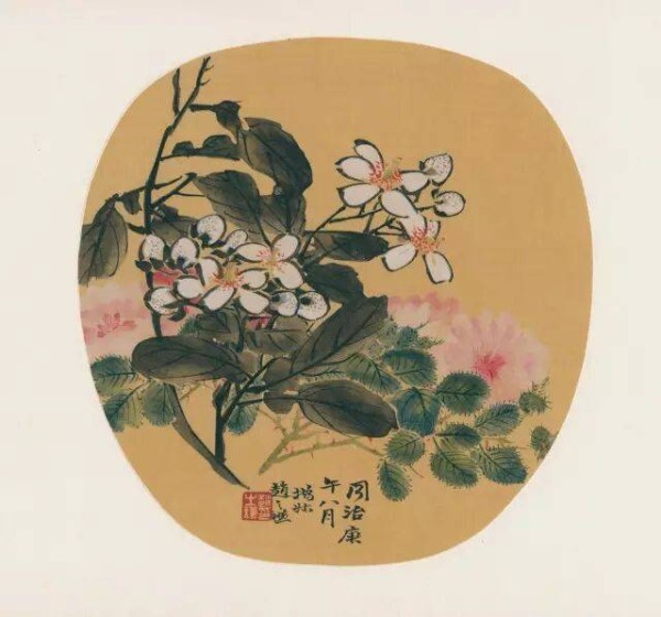 1980年,又梓行了赵之谦《紫薇玉簪》、《海棠》、《红桃》、《凤仙李子》四页纨扇小品,并重印了前四页,集辑精裱成此《赵之谦花卉册》。