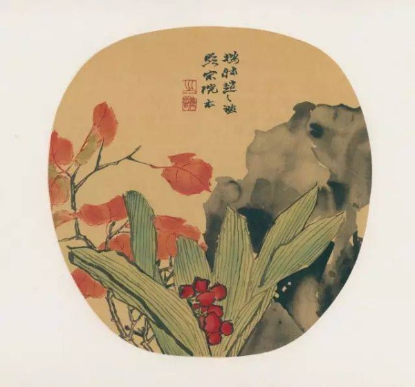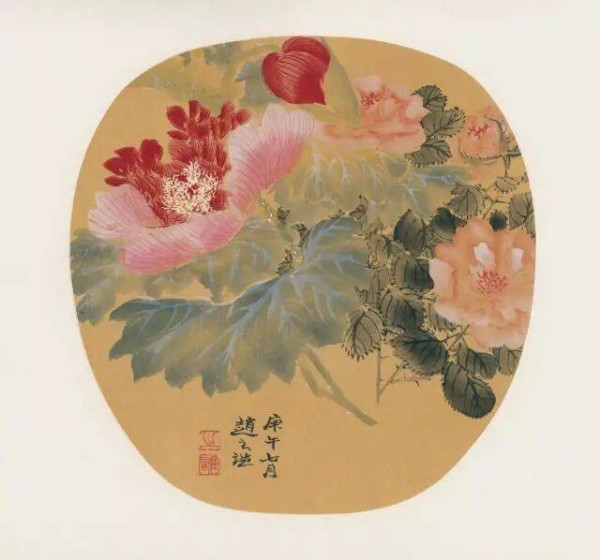 赵之谦的书画纨扇最为人称道,所绘折枝花卉活色生香,敷彩妍丽明润,用笔古茂沉雄,戛戛独造。朵云轩1950年代末雕印了《蔷薇》、《虞美人》、《月季海棠》、《万年青》四页赵之谦纨扇小品,以纸托画片纸袋装发行。