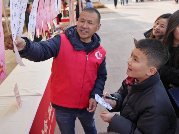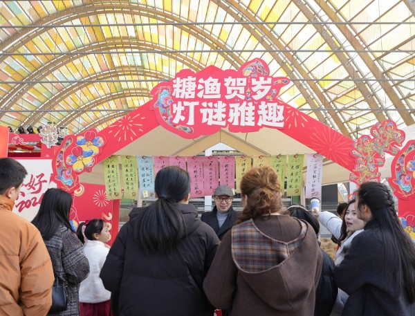 2月11日,市民在村糖会现场参与猜灯谜活动。 新华社记者 刘坤 摄