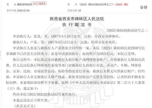 近日,知名相声演员卢鑫因被悬赏1万元而引发了广泛关注。据2月11日西安市碑林区法院执行局的消息,这一事件确有其事。根据网上流传的信息,提供卢鑫下落线索且能促使他履行相关义务的人,将获得1万元赏金,而这一悬赏案的执行法院为西安市碑林区法院,执行案号为(2025)陕0103执5553号。一位碑林区法院执行局的工作人员对记者表示,这是张玉浩申请的,悬赏是真的,并补充道,已经有专门的执行法官在处理此案。记者尝试联系负责该案件的执行法官,但未能取得回应。